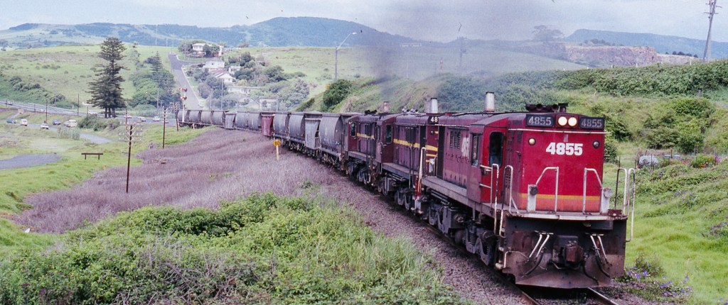 NSW diesel locomotive 4855 hauling a wheat train